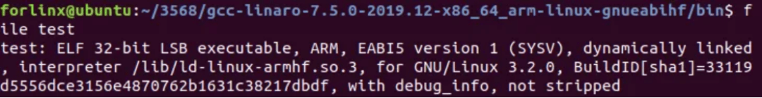 ③ 如果需要手动指定库的位置,可以使用以下命令:/lib/ld-linux-armhf.so.3 --library-path /lib32 --list /home/forlinx/test