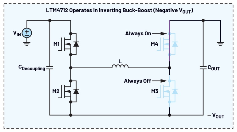 四开关降压-升压拓扑用作反相降压-升压型稳压器以提供负输出电压