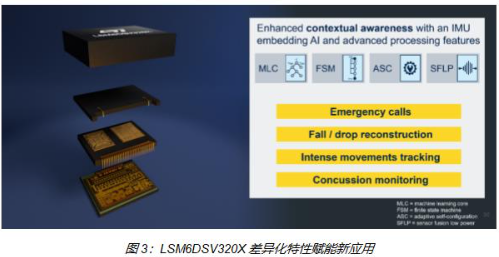 传统IMU能够测量运动和方位,而新型的 IMU的功能不止于此 ;除了基础功能,还嵌入了两个加速度计:一个用于测量日常低强度运动,另一个用于监测高强度冲击。这种双重功能配合人工智能(AI)和先进的处理功能,可以实现无与伦比的情境感知能力。