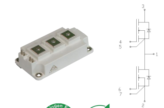 1. 采用真空回流焊工艺,AlSiC底板+低热值AlN绝缘陶瓷,最高工作结温175℃;