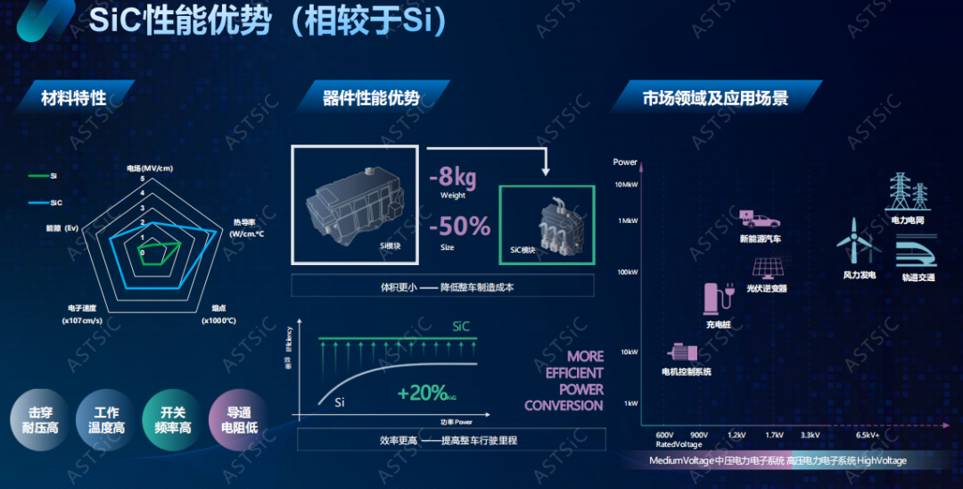 2. 功率密度高,适用高温、高频应用,超低损耗;