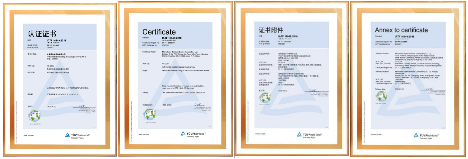 近日,安徽辰达半导体有限公司与母公司深圳辰达半导体有限公司(以下合并简称“MDD辰达半导体”)共同接受了全球领先认证机构德国TÜV莱茵的IATF 16949:2016质量体系的审核,并获得德国TÜV莱茵认证机构颁发的认证证书!这标志着MDD在汽车行业质量管理领域迈上了新的台阶,为公司持续深耕汽车市场奠定了坚实基础!