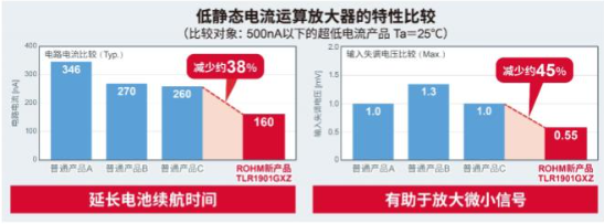 近年来,随着便携式测量仪和可穿戴设备等由电池驱动的应用对控制精度要求的不断提高,用于量化温度、湿度、振动、压力、流量等参数的传感器以及用来放大传感器信号的运算放大器的重要性日益凸显。另一方面,在致力于实现可持续发展社会等大背景下,应用产品的小型化和节能化已成为当务之急,对单个器件也提出了同样的要求。在这种背景下,ROHM通过进一步优化多年来积累的“工艺技术”、“封装技术”和“Nano Energy™电路技术”,开发出满足“小型化”、“低静态电流”和“高精度”三大需求的运算放大器。