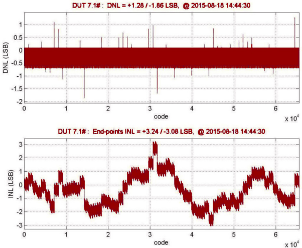-积分非线性(INL):-2.34~+5.45LSB(I通道),-2.47~+3.85LSB(Q通道);