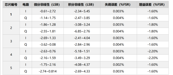 -微分非线性(DNL):-0.61~+2.72LSB(I通道),-1.14~+1.75LSB(Q通道);
