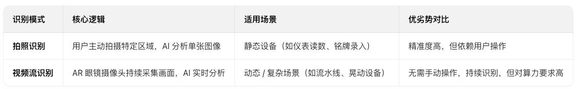 -静态 / 高精度场景(如精密仪表读数、设备铭牌录入):选拍照识别,通过用户主动对焦提升准确率。
