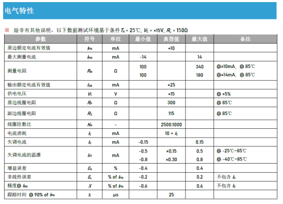 -闭环霍尔原理:高精度、优良线性、低温漂。