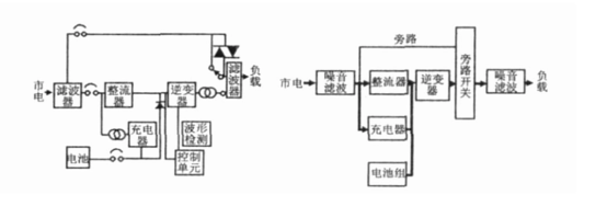 在线式UPS的核心结构主要由整流器、 逆变器、 蓄电池组、 静态开关及控制逻辑电路组成,其特点是将负载的交流电始终通过逆变器供电,确保电力供应不间断。