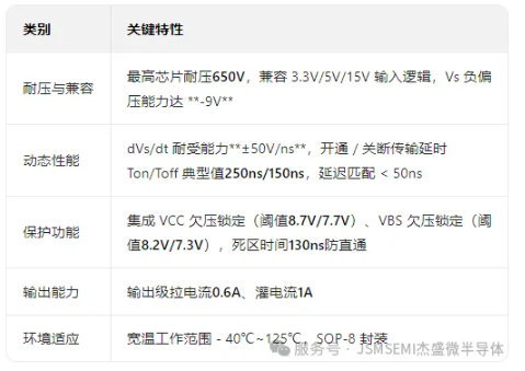 在电机驱动领域,芯片的稳定性、兼容性和性能直接影响设备的运行效率与寿命。杰盛微半导体自主研发的JSM2006G 650V 集自举单相高低侧同相电机驱动芯片,凭借优异的参数表现和广泛的兼容性,成为替代 PT5606、KP85302 的理想选择,为电机控制、家电、逆变器等场景提供高性价比解决方案。