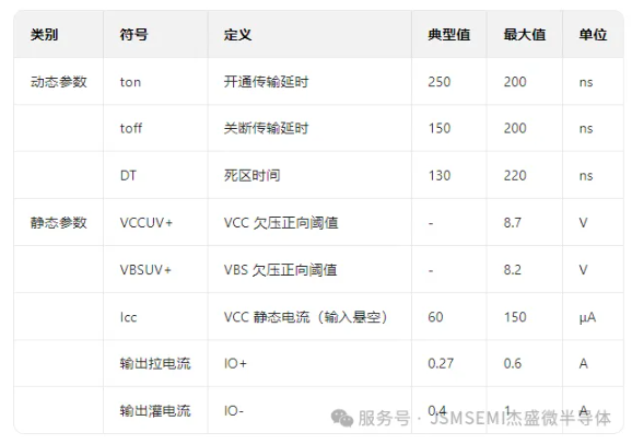 JSM2006G其浮动通道可用于驱动高压侧道功率 MOSFET,浮地通道最高工作电压可达600VJSM2006G采用SOP-8封装,可以在-40℃至125℃温度范围内工作。