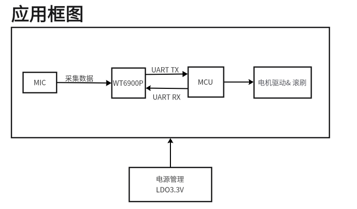 - WTK6900P 与 8 脚 MCU 的连接:WTK6900P 的 UART_TX 引脚连接到 8 脚 MCU 的 UART_RX 引脚,WTK6900P 的 UART_RX 引脚连接到 8 脚 MCU 的 UART_TX 引脚,实现两者之间的数据通信。同时,WTK6900P 的复位引脚(RST)与 8 脚 MCU 的一个 GPIO 引脚相连,以便 8 脚 MCU 能够对 WTK6900P 进行复位操作,确保芯片在必要时能够重新初始化工作。