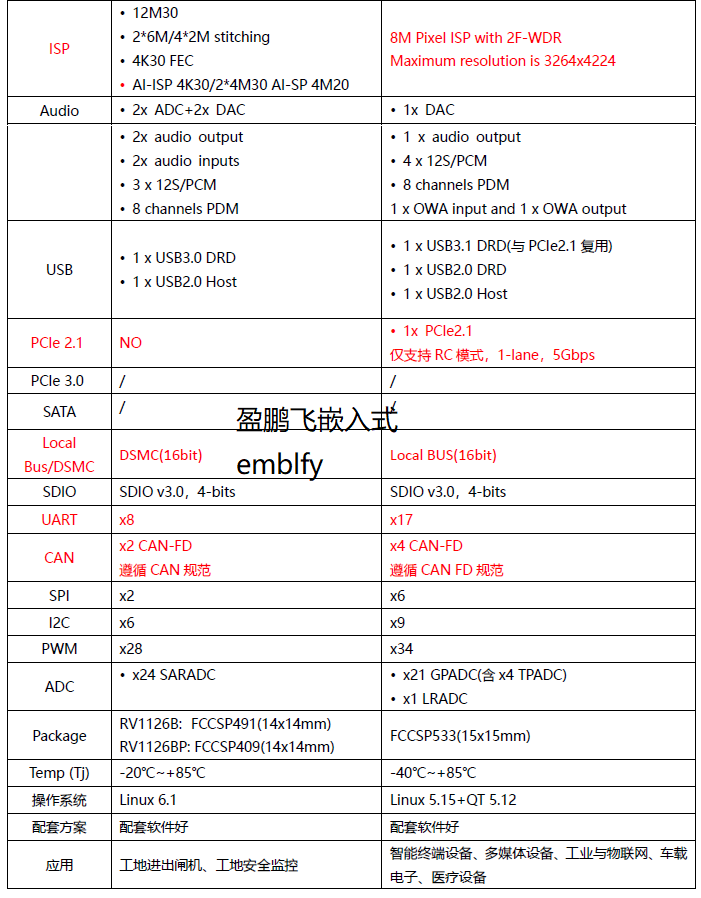 在工业通信角度,两者都集成了数据总线,一个叫DSMC,一个叫Local BUS。另外,T536集成了最多17路串口+4路CAN FD,而RV1126集成了8路串口+2路CAN FD;