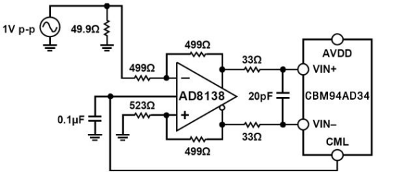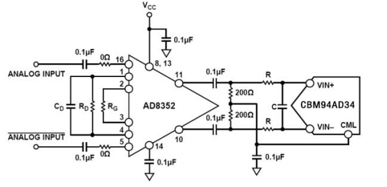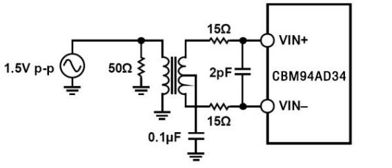 CBM94AD34通过差分输入配置可实现最佳性能,针对不同应用场景有多种推荐电路:
