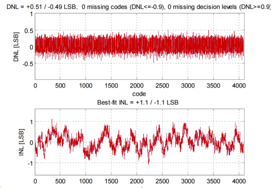 微分线性误差(DNL):-1.5~1.5LSB,积分线性误差(INL):-4.5~4.5LSB