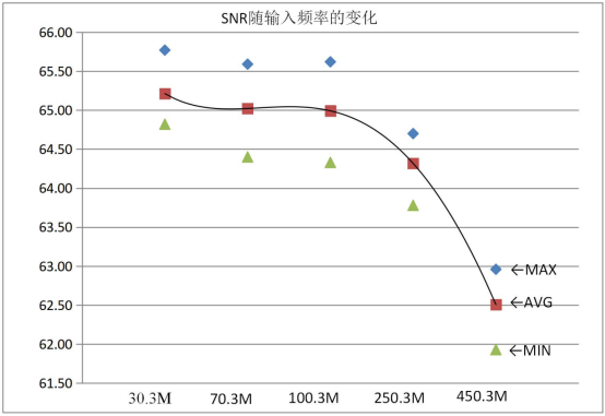 信噪比(SNR):30.3MHz输入时≥63dBFS,450.3MHz输入时≥61dBFS