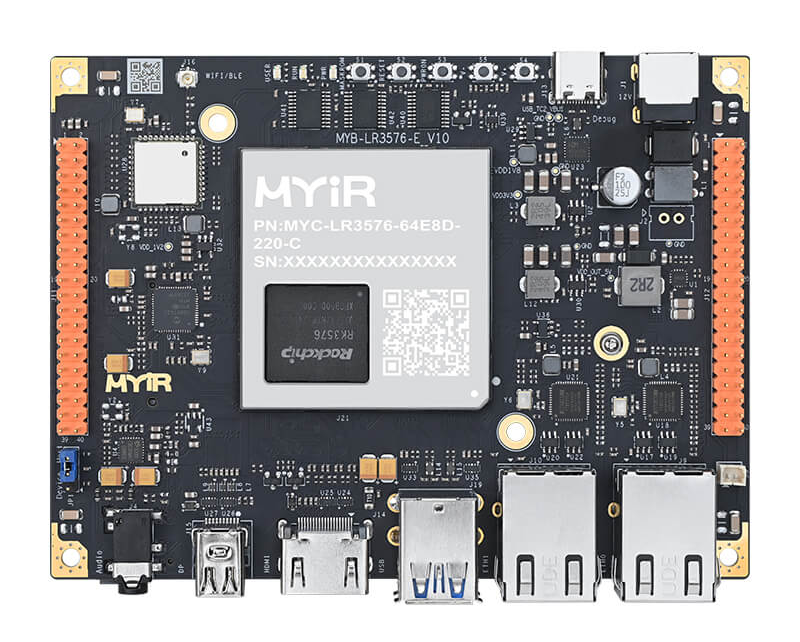 MYD-LR3576开发板,采用先进8nm制程工艺,集成四核Cortex-A72(主频2.2GHz)与四核Cortex-A53(主频2.0GHz),配备Mali-G52 MC3图形处理单元,VPU视频编解码单元,以及搭配6TOPS算力NPU。