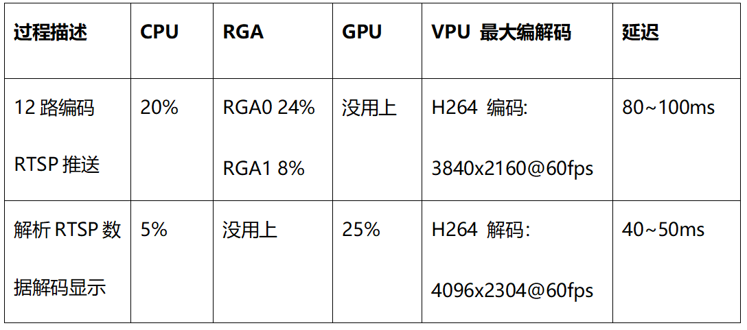 由于通过网络传输和解码,会产生40~50ms左右延迟,最终从视频抓取,编码,RTSP传输,再到解码播放延迟在120~150ms。