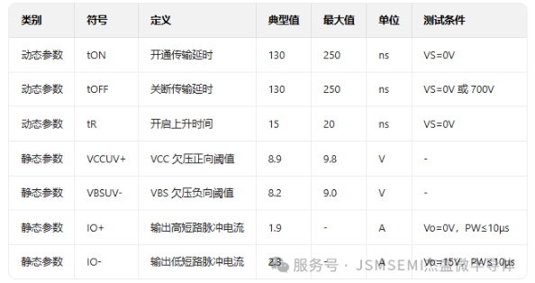 电气特性(Ta=25°C,VCC=VB=15V,CL=1nF)