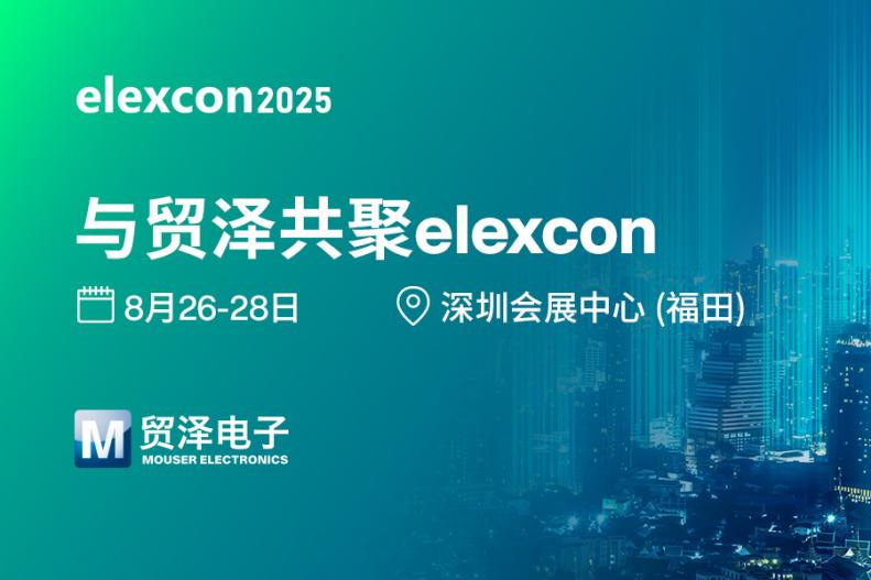 提供超丰富半导体和电子元器件™的业界知名新品引入 (NPI) 代理商贸泽电子 (Mouser Electronics)宣布将于8月26-28日亮相elexcon2025深圳国际电子展(展位号:1号馆 1Q30号展位)。elexcon2025以 “AII for AI, AIl for GREEN”为主题,深度聚焦AI与绿色双碳上的全栈技术与供应链支持。届时,贸泽电子将携手Amphenol, DFRobot, ESPRESSIF, NXP, Microchip, Renesas, Seeed Studio, Silicon Labs, Vicor等知名厂商,聚焦嵌入式AI、电源、能源系统、电动工具、绿色出行、AI算力、工业自动化、电动汽车等前沿技术与绿色应用。