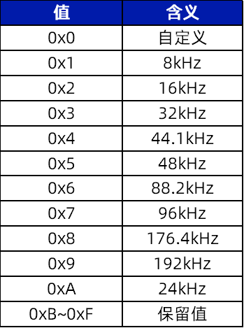 其中:nsr表示音频数据的采样速率,AAF支持多种采样速率,包括: