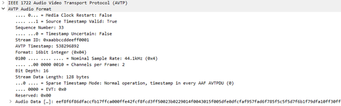 下图是wireshark对AVTP AAF实际的解析界面截图: