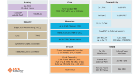 在众多应用场景中,安全性是防止误操作、故障或损坏引发事故的关键。例如,在含活动部件的设备中,电气系统必须具备容错能力或可预测的失效机制。针对这类具备安全要求的场景,MCX E24提供了全面的功能安全架构,专为构建IEC61508合规系统而设计,最高支持SIL 2等级。硬件诊断功能包括程序流程监测、时钟与电源监控、Flash/SRAM/寄存器的ECC保护、看门狗定时器、CRC引擎及故障记录。此外,恩智浦还提供配套的SafeAssure文档套件,其中包含IEC60730 Class B电器合规预认证库及IEC61508软件框架。