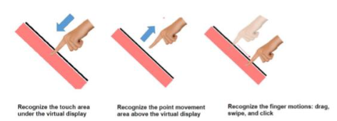 当与LIPSense™ Touchless ST110F及LIPSedge® T225集成后,该方案就具备了神经网络推理功能,拥有低延迟和即时分析能力,检测范围可达0.3至7米,且具备80K Lux的抗阳光性,能在从黑暗到日光的各种光照条件下正常工作。此外,它还能识别虚拟显示器下的触摸区域、上方的点移动区域,以及手指的拖拽、滑动、点击等动作。