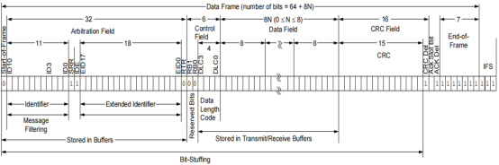 | Control(控制域) | IDE:标识标准帧和拓展帧,标准帧为0,扩展帧为1
