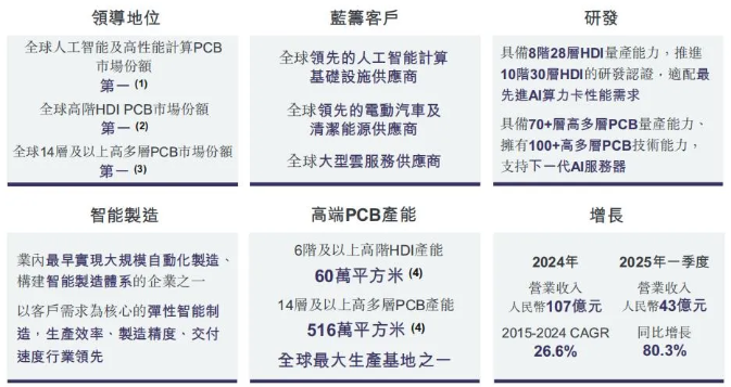 在这一领域,胜宏科技(惠州)股份有限公司(「胜宏科技」)凭借领先技术、高质量产品和行业领先产能优势,已成长为全球高端PCB的领军者。根据弗若斯沙利文的资料,以2025年第一季度人工智能算力PCB收入规模计,胜宏科技市场份额位居全球第一。8月20日,胜宏科技向港交所递交上市申请,拟通过「A+H」两地资本市场布局,为下一阶段的跨越式发展蓄力。