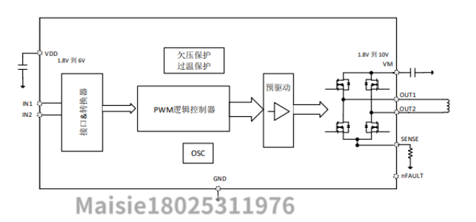 • IN1/IN2 全桥控制逻辑