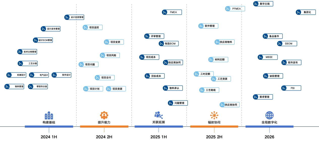 PLM2.0项目以“打通研产供销全链路”为核心,通过六大模块升级实现业务质的飞跃: