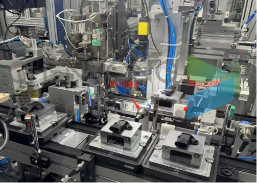 针对传统条码识别的痛点,晨控提出使用 RFID 技术识别,核心创新在于将 RFID 标签固定安装于高压包载具(用于承载高压包壳体及各部件流转的专用工装),依托载具的稳定流转特性与工业级 RFID 技术的优势,构建高压包产线全流程智能识别体系: