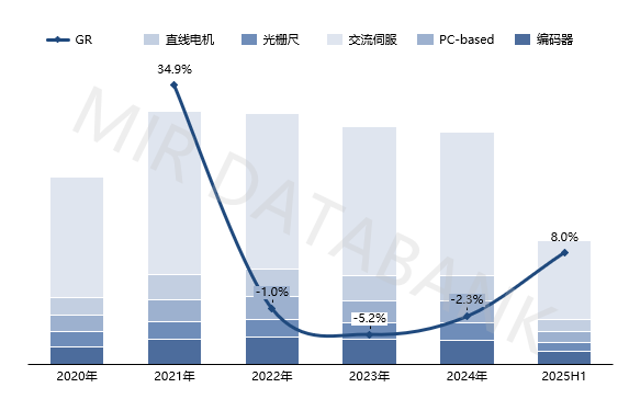 根据MIR DATABANK最新数据显示,2025上半年中国运动控制产品市场实现小幅正增长,同比增长8%。