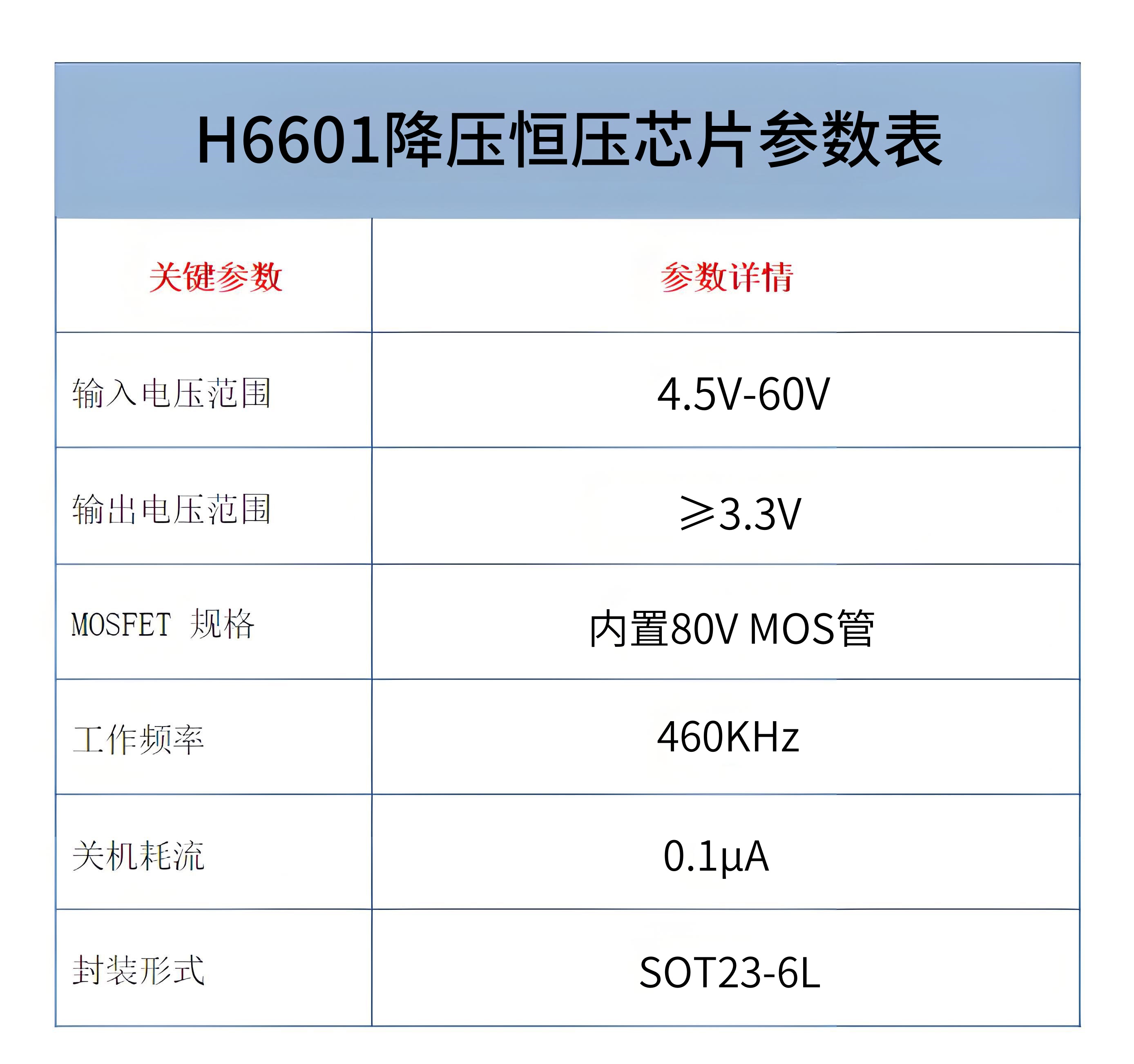 二、H6601 降压恒压芯片参数