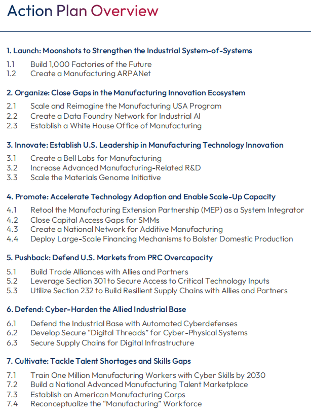 行动计划将先进制造业定义为“融合 AI 与原子世界的下一场工业革命”。