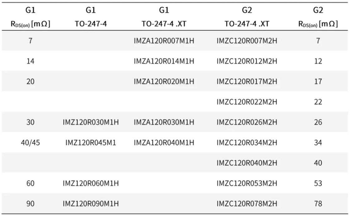 以下是TO-247-4封装的G2选型表供参考: