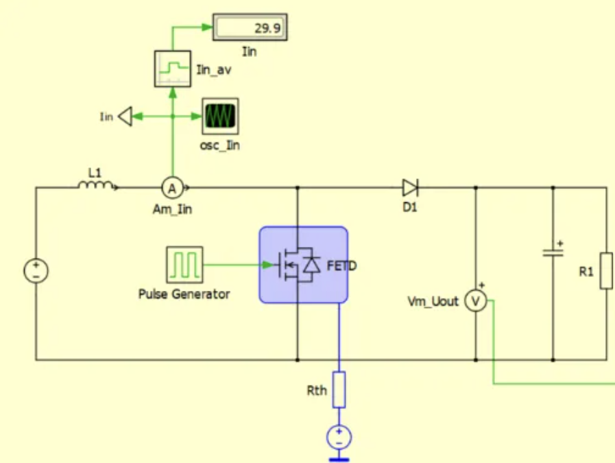 除了RDS(on),开关损耗在SiC MOSFET的选型中也扮演着非常重要的角色。因为SiC往往工作在非常高的开关频率,尤其在硬开关拓扑中,开关损耗的占比可达60%以上。这时使用开关损耗更低的G2来代替G1,会取得明显的系统优势。下面我们通过MPPT boost电路的仿真实例来看一下。