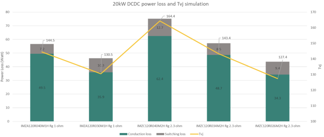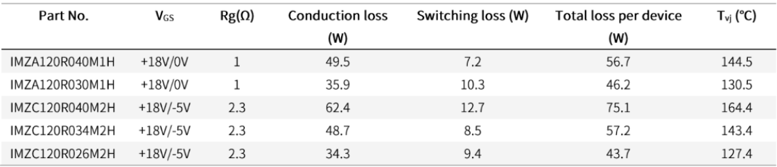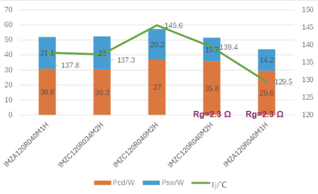 ■ 使用IMZC120R034M2H取代IMZA120R040M1H,可使损耗和结温维持在同一水平