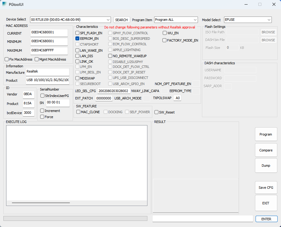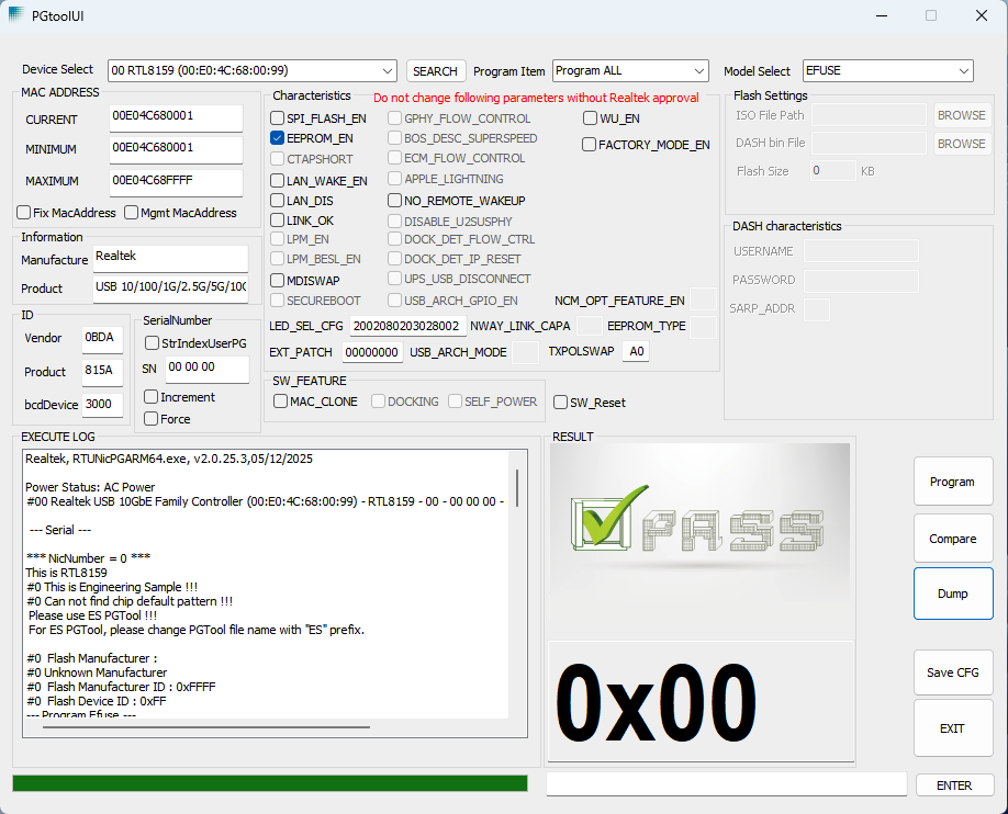 Realtek USB LAN IC 是通过 USB PGtool 将 MAC地址、SVID/SMID、LED灯号定义或其他硬件配置参数写入 IC 内部的 efuse 或外部 eeprom。