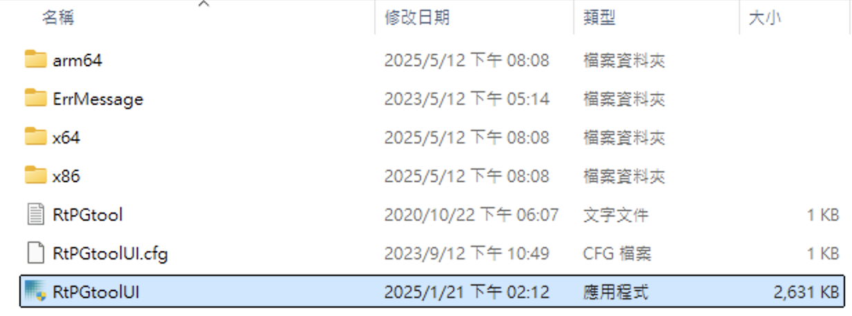 4. 点击“RtPGtoolUI”打开 PGtool(USB PGtool 是通过 UI 界面操作的)