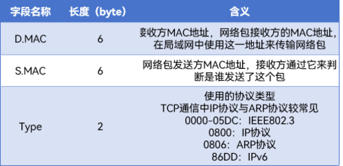 其中,以太网首部占用14字节、FCS(Frame Check Sequece)(帧校验码)长4个字节,用于检验数据在传输过程中数据是否出现了错误,为CRC32校验码。