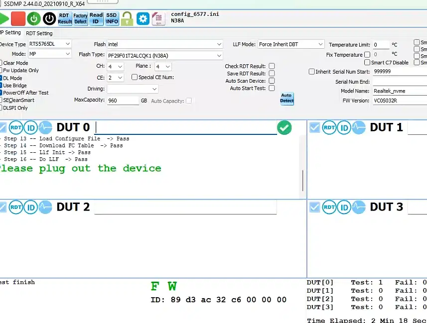 小伙伴说自己的固态硬盘被拒保了,没办法只能自己学着修复,搞了N久搞不定,让我试试。拆开包装看到主控和闪存分别是RTS5765DL、N38A。