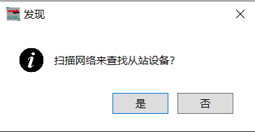 此时弹出“发现”对话框,提示是否扫描EtherCAT网络的从站设备,如下图所示: