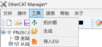 使用电脑打开EtherCAT Manager软件,使电脑网口连接到HT1S-ECM-PNS网关的CFG口,