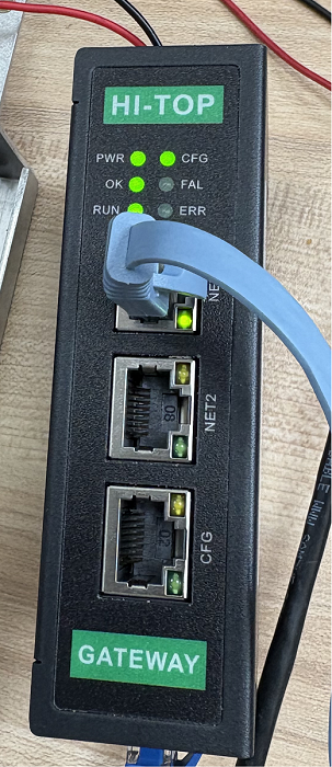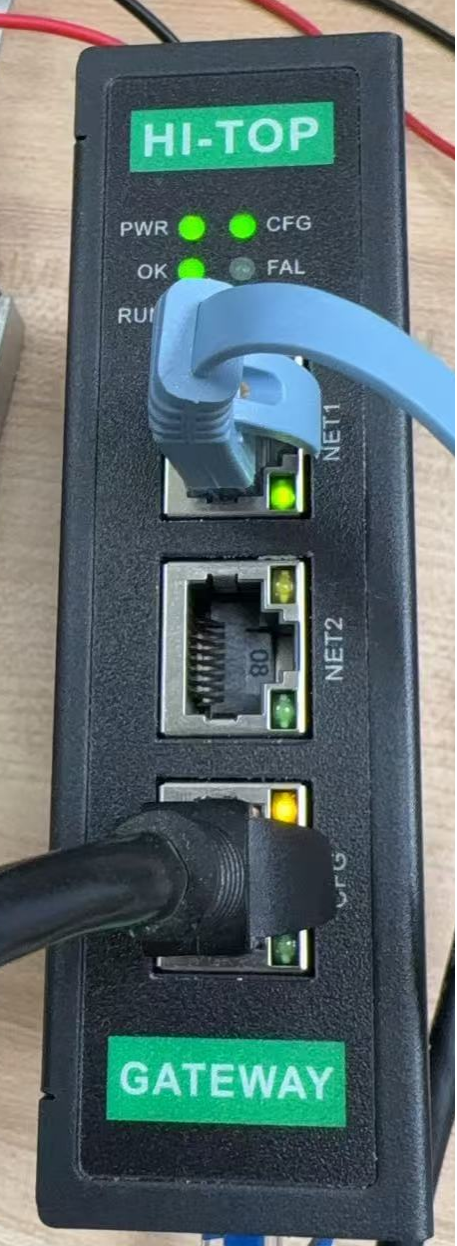 网关正常运行时各指示灯如下图所示,OK灯常亮、RUN灯常亮,如图