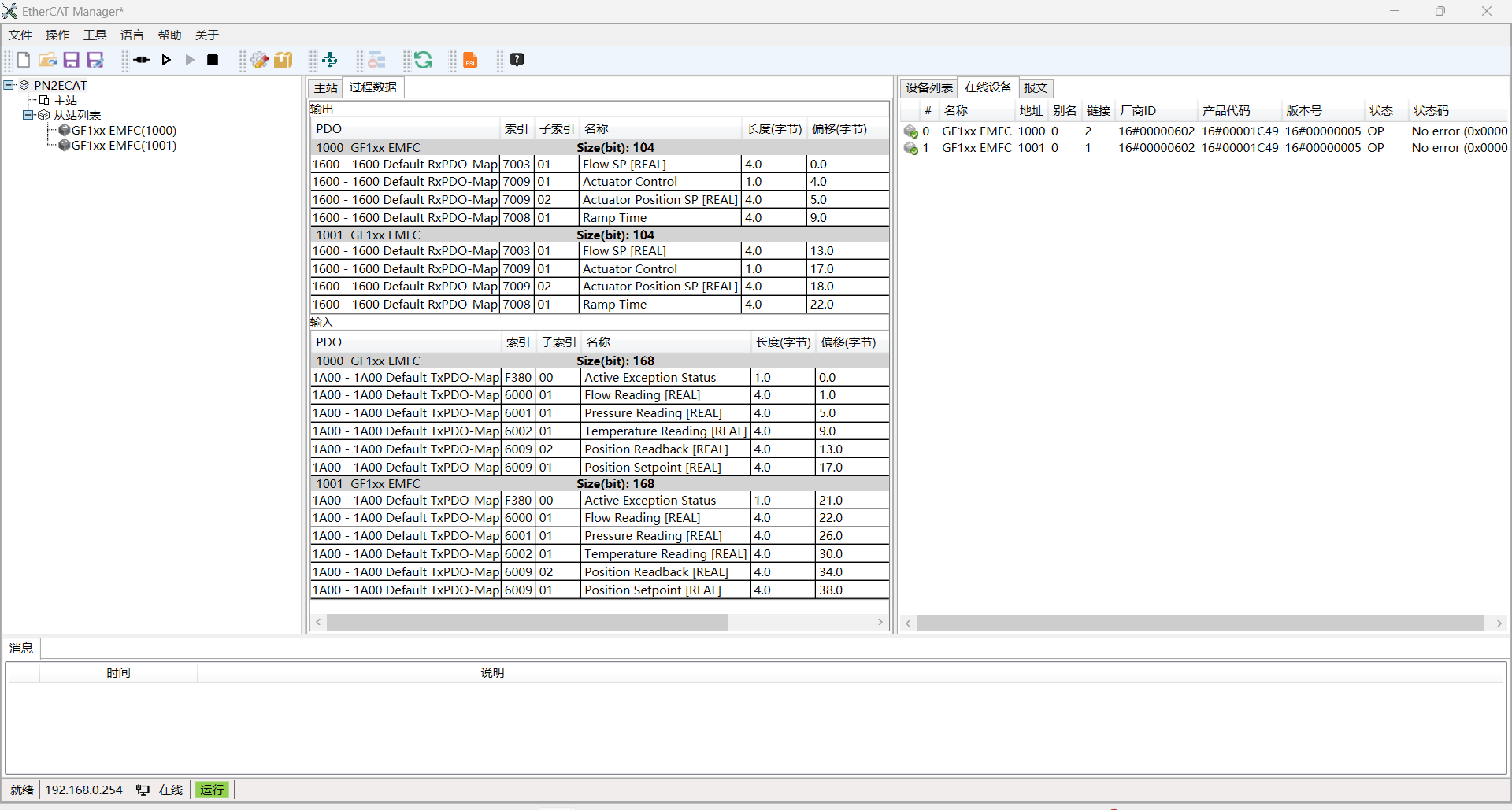 使用软件中“工具--生成”进行的生成过程数据,这个地方映射流量计的PDO属性,可以看对应关系,生成后如下图: