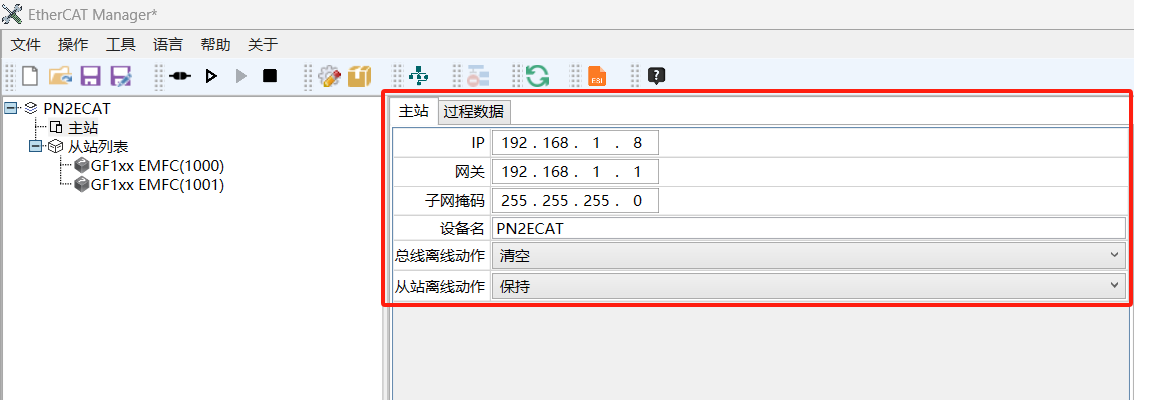 下面来介绍HT1S-ECM-PNS的配置,网关主要参数配置功能用EtherCAT Manager这款软件来进行。