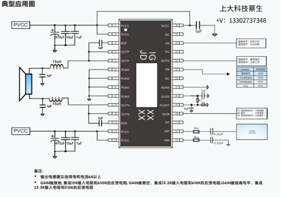 若你需要进一步调整增益,IU8693E的GAIN管脚支持三段增益选择,分别对应不同的集成输入电阻与反馈电阻;若需限制输出功率,可通过设定PLIMIT引脚上的电压控制最大占空比来实现,搭配推荐的6A以上饱和电流电感,能让系统性能更稳定。