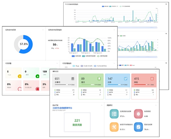 研发效能的提升需要精准的“数字画像”。AI+PET方案的效能度量模块会自动汇总全流程数据,根据用户需要生成各式数据看板:从“代码提交到构建成功的平均时长”到“缺陷修复的闭环周期”,从“各团队测试用例复用率”到“资源成本占比”,以及项目测试缺陷趋势等,直观呈现研发流程中的瓶颈。并且AI分析当前研发数据情况,生成多维度效能数据分析报告,给出优化建议。