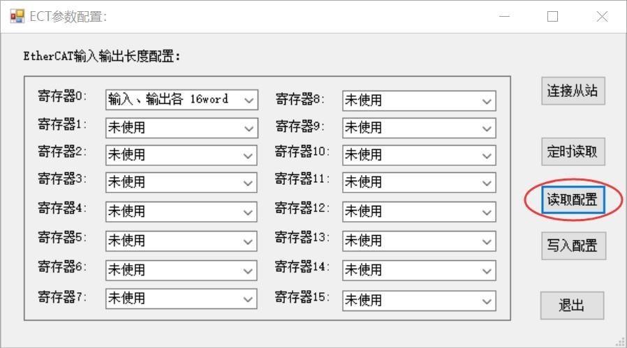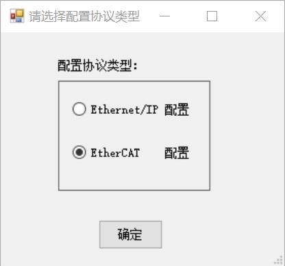 在协议选择框中选择“EtherCAT配置”,点击确认按钮。